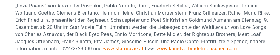 ABOUTBUSINESS MAGAZIN / Kultur-Explosion in Niederösterreich: LOVE POEMS mit SIR KRISTIAN GOLDMUND AUMANN