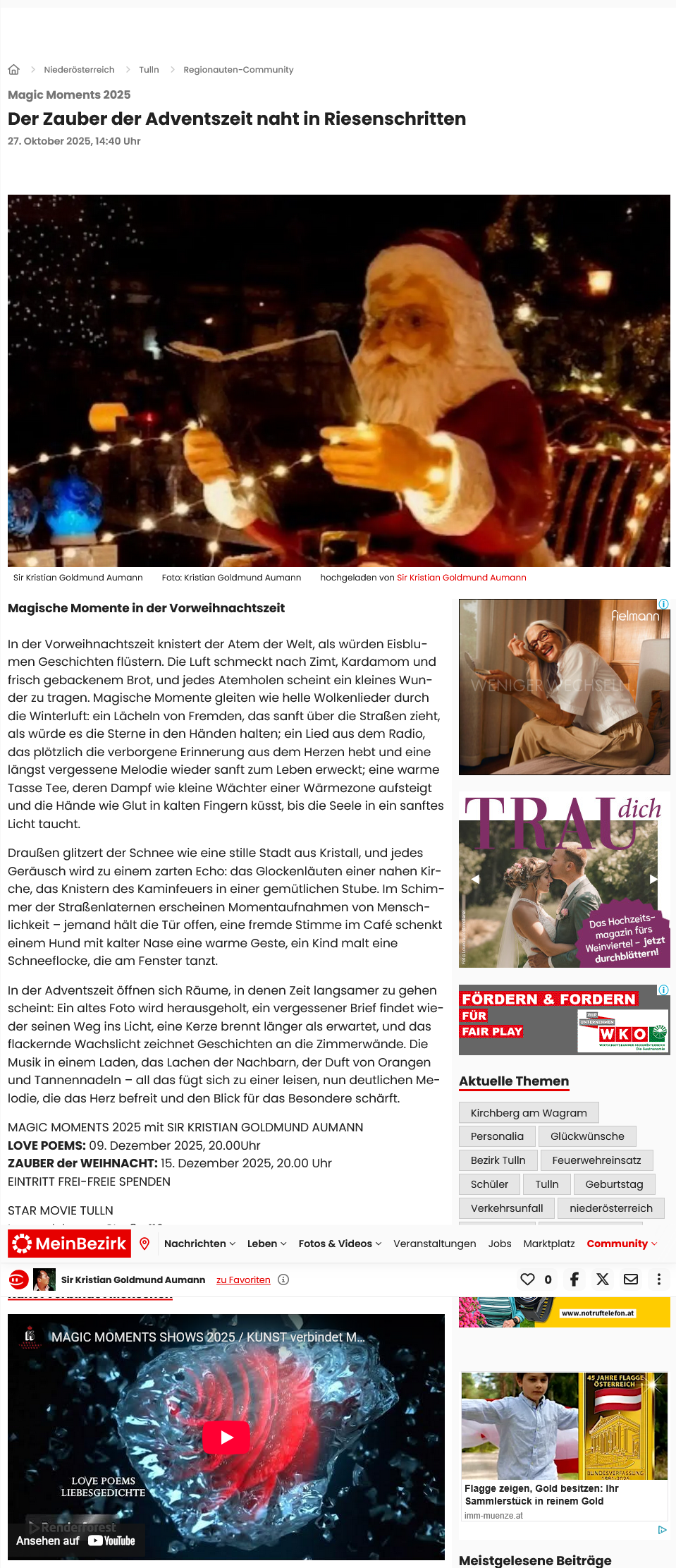 BEZIRKSBLÄTTER / NÖ / World Poetry Day 2025 / INTERVIEW mit SIR KRISTIAN GOLDMUND AUMANN