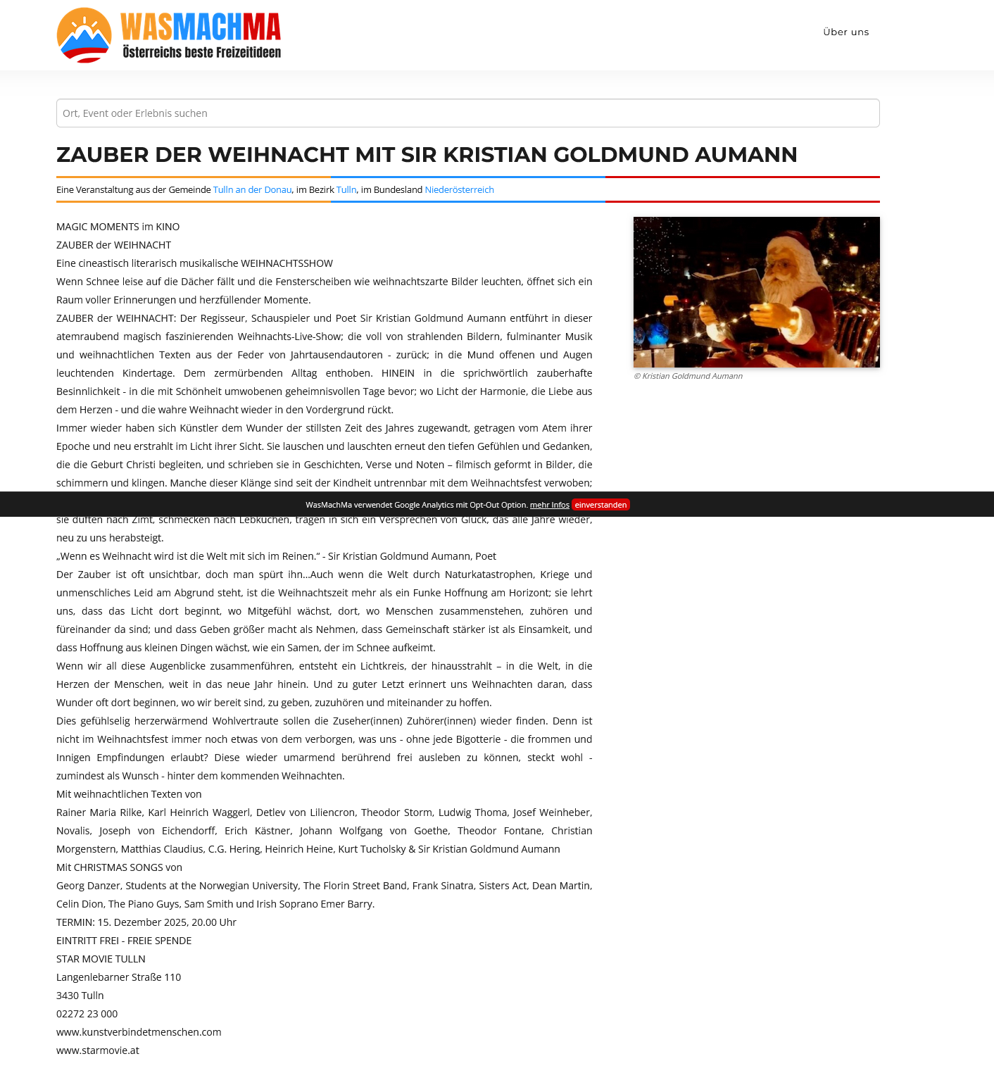 WASMACHMA - Österreichs beste Freizeitideen / ZAUBER der WEIHNACHT mit SIR KRISTIAN GOLDMUND AUMANN